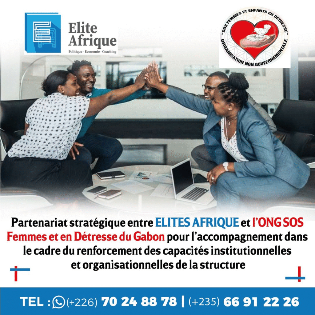 ELITE AFRIQUE et l’ONG nationale Gabonaise SOS Femmes et Enfants en Détresse s’associent pour renforcer les capacités institutionnelles et organisationnelles de la structure. Ce partenariat vise à améliorer la gestion, la gouvernance, la performance et l’impact de l’ONG dans leur mission d’accompagnement des jeunes et femmes en situation de Détresse.